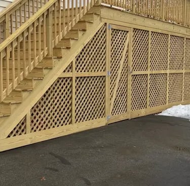 Choose TimberTech, pressure-treated, railing styles, layout options, stairs, skirting, lighting, and trim details. We help guide what works best for your home.