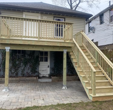 We build everything from simple pressure-treated platform decks to fully customized TimberTech composite systems with Azek or vinyl railings, hidden fasteners, wrapped beams, skirt boards, stairs, lighting, and upgraded trim details. Whether you’re replacing an outdated deck, expanding your outdoor space, or designing a multi-level layout, we deliver clean, strong, frame-to-finish craftsmanship with the right materials and proper structural support.